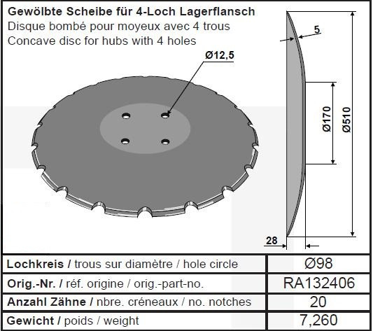 Диск борони (ромашка) 510 VOGEL & NOOT RA132406